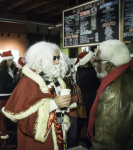 The next year, the Brass Messengers band was added “and that took it into orbit,” he adds. The Brass Messengers will be back this year, and Parry expects the weather will be more cooperative than the time their instruments froze up. Parry says one of his favorite reactions to SantaCon is from kids in a restaurant as a parade of Santas passes by. “Their parents have a lot of explaining to do.”